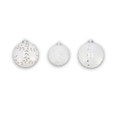 Questo set include 6 palline di Natale bianche, realizzate in vetro di alta qualità, con un diametro di 12 cm ciascuna. Ogni pallina è decorata con motivi unici, glitterati e brillanti, per creare un'atmosfera sofisticata e incantevole durante le festività natalizie.