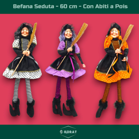 Disponibile in diversi modelli e colori, questa collezione di Befane si adatta a ogni stile: dalla Befana Classica in bianco e nero, elegante e nostalgica, alla Scozzese Natalizia con colori caldi e festivi; dalla Befana Allegra con la sua sciarpa colorata, alla Volante con il cartello "Welcome", fino alla Verde Magia, ispirata alla fantasia e alla leggenda.