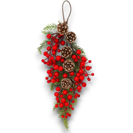 Decorazione Natalizia Elegante e Realistica – Trasforma la tua casa in un angolo di magia natalizia! Il nostro dietro porta natalizio con pigne e bacche rosse è la scelta perfetta per chi desidera un addobbo raffinato e naturale. Realizzato con rami di abete artificiale ad alta densità, pigne vere innevate e bacche rosse brillanti, aggiunge un tocco festivo e accogliente a qualsiasi ambiente.